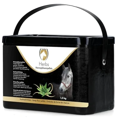 Excellent Herbs hemp flour pellets is feed material for horses and supports the bowel function and overall health. Ideal in case of tension.