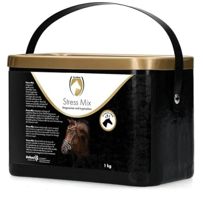 The mix of L-tryptophan and magnesium is important for normal nerve and muscle function. Complementary feed for horses in case of tension and stress situations. Stress Mix is 100% natural and based on the animo acid L-tryptophan, a high amount of magnesium and added vitamins and minerals. L-tryptophan and magnesium are important for normal nerve and muscle function. Stress Mix relaxes and provides rest in a natural way so that the horse can perform optimally. Ideal to use for Training (young) horses In periods of competition Change of environment Transport Easy to apply and ideal to use in case of stress situations.