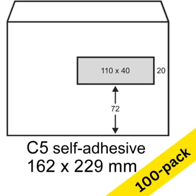 Exclusive C5 white envelope window right self adhesive, 162mm x 229mm (100 pack)