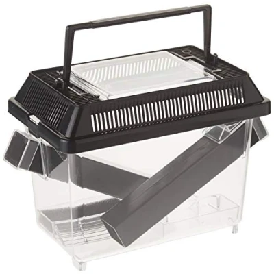 Complete cricket care kit Removable, well-ventilated lid Easy cricket dispenser Includes cricket food and water bowl Makes cricket feeding neat and tidy