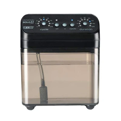 Programmable misting unit for terrariums and greenhouses is easy to connect and install Strong 2.5 BAR / 36.25 PSI water pressure pump Flexible spray nozzle (up to 2) can be pointed in any direction Pressure resistant Polyether tubing & leak-proof connectors Easy to refill 1.5 liter (0.4 gallon) reservoir