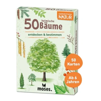Compact knowledge package: On 50 cards, a tree is presented with a lifelike illustration and a profile with information on height, leaves, flowering time and occurrence. Play and learn: the card set contains many exciting quiz questions in addition to interesting facts about the trees, making it suitable for nursery and school lessons. Conveniently packaged: the beautifully designed pop-up box keeps the identification cards securely together, making it the perfect companion for your next trip or family walk. Everything at a glance: In addition, a detailed leporello including glossary on the most important terms from umbels to cones is included. For small and large naturalists: the cards are aimed at children aged 6 and up, but also contain many interesting things about the trees and their properties for adults., Manufacturer: moses. Verlag