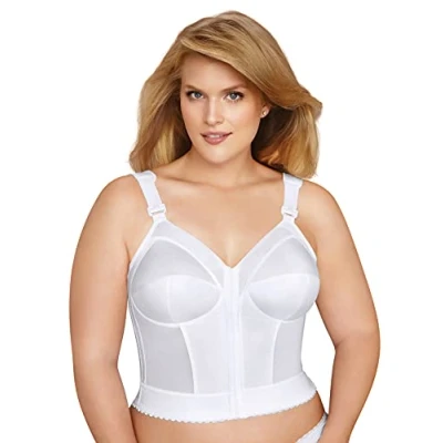 FULL-COVERAGE LONGLINE. Enjoy more comfort and control with our wireless longline. Built with innovative features for slimming, shaping and posture support, this V-neck bra features breathable mesh and a wide elastic band for the perfect fit. POSTURE SUPPORT. This women's full-figure longline is designed with supportive 3-part seamed cups, power mesh waist-slimming panels and flexible side boning to help support your back, smooth your waist and correct your posture. ULTIMATE COMFORT. This posture corrector longline not only helps straighten your back — it's comfortable enough for all-day wear too. With soft, wireless cups and straps with movable shoulder pads, this smoothing longline provides long-lasting comfort. FRONT CLOSE. The days of blindly reaching behind you to clasp your bra are over. Our lifting and supportive longline bra has a convenient and comfortable brush-backed front-closure to make dressing for the day a breeze. MULTIPLE COLORS & SIZES. Absolutely love this full-support longline bra? With multiple options to choose from, this full posture bra comes in white, nude and black from size 34B to plus size 48DD. SIZE INFORMATION. This posture longline bra comes in size 34B to plus size 48DD. Please note, this may not be the ideal fit if you have a shorter torso. We suggest sizing up a band size if you have a belly (e.g. 38D should move to 40C or 42B).