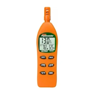 Simultaneous display of percent RH, temperature and dew point or wet bulb or probe temperature Wet bulb measurements without slinging Unique sensor cap design twists to closed position for protection during storage Switchable F/C temperature units with 0.1 Deg. Resolution Data Hold freezes current reading on display, Simultaneous display of %RH, Temperature and Dew point or Wet Bulb or Probe Temperature