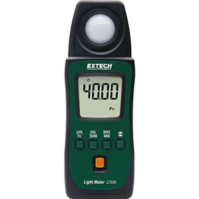 Measure light intensity with a precision photodiode with cosine and color correction filters in Footcandle (Fc) or Lux units Zero/calibration function Data hold and min/max functions Automatic shut-off with deactivation