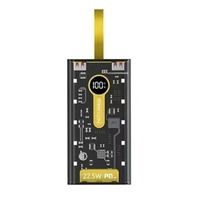 External Battery Transparent Black Quick Charge 22.5W, powerbank 20000mAh