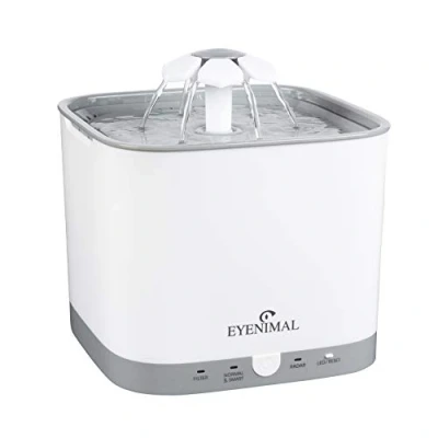 3 operating modes: continuous, at regular intervals, with motion detection TRIPLE ACTION FILTER - Traps deposits (dust, food, hair), removes bacteria and odours with activated carbon and softens tap water by reducing excess magnesium and calcium to prevent urinary tract diseases Filter Replacement Indicator Water level indicator On/Off Button