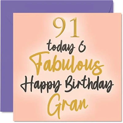 Fabulous 91st Birthday Cards for Gran 91 Today & Happy Card from Granddaughter Grandson, Gifts, 145mm x Lovely Greeting Gift Granny