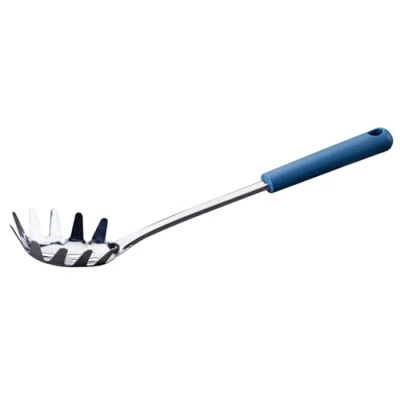 Fackelmann Essential Spaghetti Spoon Stainless Steel with Ergonomic Dark Blue Handle, Ideal for and Linguine, Dishwasher Safe