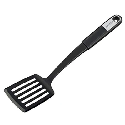 High-quality, modern design slotted turner with durable and non-slip soft touch handle which fits comfortably in the hand Use: spatula suitable for coated pots and pans Box contents: 1 x slotted turner in proven quality by Fackelmann. Material: plastic functional part, plastic handle with stainless steel cap, heat-resistant up to 270 °C, dishwasher-safe Size: Approx. 32 x 5.5 x 7.5 cm, Weight: 0.2425084882 pounds, Manufacturer: Fackelmann GmbH + Co. KG