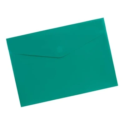Semi-opaque green plastic envelope folder. White Velcro closure. A4 capacity. Measurements: 33.5 x 23.5 x 0.0 cm