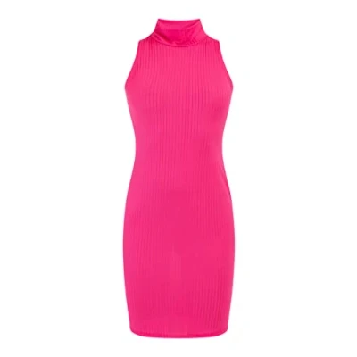 Short sheath dress Soft jersey material Wide ribbed knit look High stand-up collar Figure-hugging silhouette