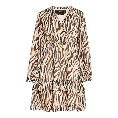 Animal Print Dress V-neck Ruffled collar Elasticated waist