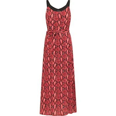 Elegant maxi dress All-over snake print With tie belt Concealed zip High side slits