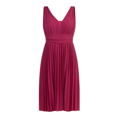 Knee length jersey dress With glittering effect yarn Concise waist Pleated midi skirt Plunging back plunge