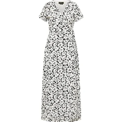 Long wrap dress with all-over print Flowy, wrinkle-resistant material With tie belt With short sleeves With inner lining