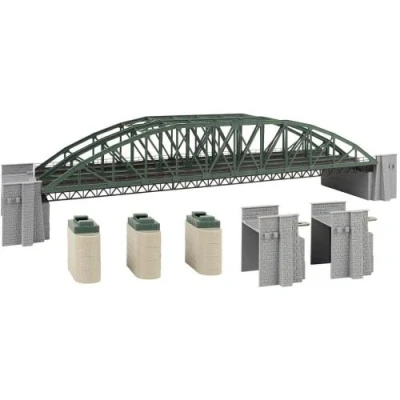 Majestically, the arch bridge towers over the miniature landscape. Whether built on a single track one after the other or two-track next to each other, it is a real eye-catcher. The kit contains bridge heads and pillars and the clearance height is 51 mm., Manufacturer: Faller