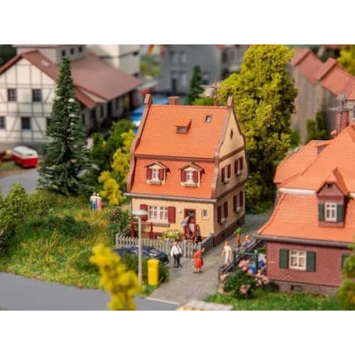Model size: 70 x 47 x 77 mm Track gauge: N - Scale: 1:160 Epoch: Moderate - Difficulty Level: Moderate This building kit contains: 171 single parts in 6 colours, window parts, 1 curtain mask and 1 building instruction. Verwenden Sie zum Basteln FALLER - Plastikkleber., Manufacturer: Faller