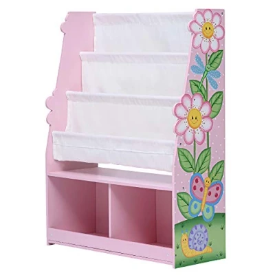 DESIGN: Decorated with a magical display featuring friendly garden creatures for a whimsical playroom storage solution. Teach your kids colour and character recognition and enhance their imaginative minds. great for encouraging children's independence. AMPLE STORAGE: 2 open shelves and 4 sling sleeves keep books organized and displayed for easy access DURABILITY: Constructed of durable wood with easy-to-clean surfaces for long-lasting use and easy upkeep ASSEMBLY: Easy to assemble and comes with step by step instructions. Perfect for all ages. DIMENSIONS: Measures 79.5 x 60.5 x 23.5 cm to fit in almost any bedroom or play area, Manufacturer: Fantasy Fields By Teamson
