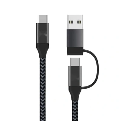 Charge and transfer data with a **Versatile Cable** 2-in-1 USB-C to USB A/B. [Fast & Efficient] (Ideal for Devices) [2-in-1] USB-C to USB A/B Charging Cable, [Fast] (up to 2.4A) and [Versatile] (Ideal for Charging and Data Transfer). 2-in-1 USB-C to USB A/B Charging Cable: [Fast] and [Versatile] for charging and transferring data. [Easy Installation]: [Plug & Play] [2 in 1] USB-C to USB A/B Charging Cable, [Fast & Versatile] for Safely Charging Devices and [Data Transfer] (High Quality). 5. Recommended Applications or Uses: - Perfect for [offices] and [homes], ideal for charging [smartphones] and [tablets] (fast charging and transfer).