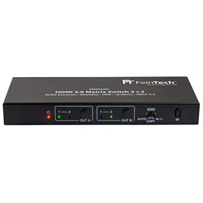 FeinTech VMS02201 HDMI 2.0 Matrix Switch 2x2 with Audio Extractor 4K HDR SPDIF