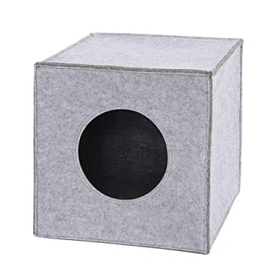 𝗜𝗗𝗘𝗔𝗟 𝗥𝗘𝗧𝗥𝗘𝗔𝗧. Whether as a shelf cave or free-standing in the room - your cat will be happy to retreat into it and feel at home. 𝗛𝗜𝗚𝗛-𝗤𝗨𝗔𝗟𝗜𝗧𝗬 𝗪𝗢𝗥𝗞𝗠𝗔𝗡𝗦𝗛𝗜𝗣. With a wall thickness of 5 mm and high-quality sewn felt, the cat cave offers an all-round safe feeling and is very stable. 𝗦𝗨𝗜𝗧𝗔𝗕𝗟𝗘 𝗙𝗢𝗥 𝗦𝗛𝗘𝗟𝗩𝗘𝗦. You can use the foldable cave in some shelves, such as the Ikea Kallax/Expedit. The diameter of the cave entrance is 17 cm. 𝗢𝗣𝗧𝗜𝗢𝗡𝗔𝗟𝗟𝗬 𝗪𝗜𝗧𝗛 𝗖𝗨𝗦𝗛𝗜𝗢𝗡. The cosy cave comes with a soft cushion with a removable cover. The comfortable felt provides warmth and cosiness on its own. 𝗗𝗜𝗠𝗘𝗡𝗦𝗜𝗢𝗡𝗦. With dimensions of 33x37x33 cm, this cuddly cube can be set up anywhere and is very space-saving thanks to its foldability. You can choose between a light grey or dark grey cave, with or without a cosy cushion.
