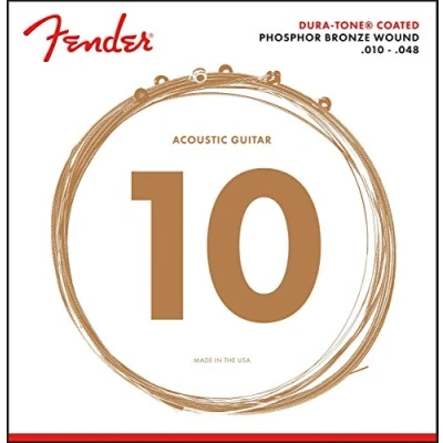 String Gauge Extra-Light 860XL: .010, .014, .022, .030, .040, .048 Combining the rich, warm tone of our phosphor bronze with the bonus resilience and longevity of Dura-Tone coating, these acoustic strings offer players articulate sound with outstanding reliability. Wind up a set of these ball-end strings to brighten up your tone and keep wear, rust and residue buildup at bay. Fender's Dura-Tone coating adds resilience and longevity with a layer of coating bonded to a phosphor bronze wrap wire Phosphor bronze strings give your acoustic guitar richly resonant warmth and tonal purity with a softer and more mellow voice ideal for intimate acoustic performances