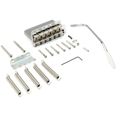 Vintage-style 2-7/32" (2.220") mounting and string spacing Six "Fender"-stamped bridge saddles with mounting screws Tremolo claw and springs. Tremolo arm with tip and tension springs included String tree, mounting hardware and adjustment wrench included For American Vintage series Stratocaster models