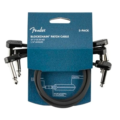 Fender Blockchain 12" Patch Cable, 3 Pack, Angle/Angle