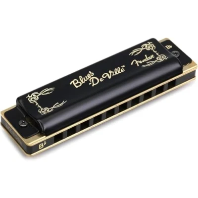 Key of B flat Designed to sound as good as the Fender brand name would suggest Its richer tone and pitch is made possible with a molded PVC comb and precision phosphor bronze reeds Traditional shape and black satin covers will make your harmonica look as good as it sounds