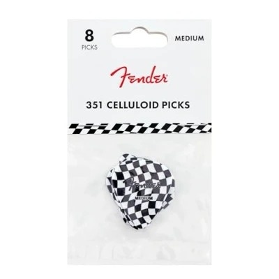 Fender Celluloid Guitar Picks, 351 Shape, Checkerboard, Medium, 8 pack