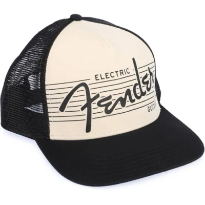 Fender is indeed renowned for its electric guitars. The company was founded in 1946 by Leo Fender and initially produced amplifiers, but later became famous for its electric guitars, including models like the Telecaster, Stratocaster, and Jazzmaster. These guitars played a significant role in shaping the sound of popular music. Put on a piece of our rich history with your new Fender Electric Guitar Hat 5 panel retro adjustable structured hat Matching eyelets, button, & visor, screen-printed front logo
