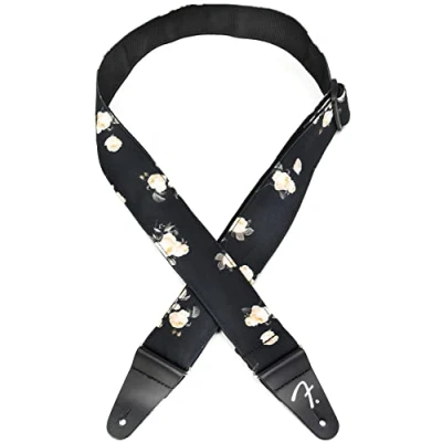 Step up your style on-stage with the Floral Strap! eaturing vintage rose-patterned designs, the Floral Strap is crafted from smooth polyester twill fabric. Twill weave fabric with a classic textured design. Which is backed by smooth tubular nylon for increased comfort. 2" width with a length adjustable from 34"-59" Featuring the iconic Fender "F" cone-shaped leather ends