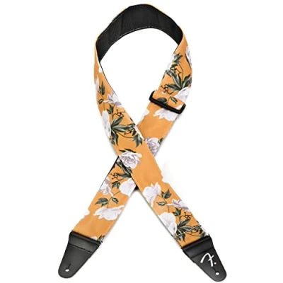 Step up your style on-stage with the Floral Strap! eaturing vintage rose-patterned designs, the Floral Strap is crafted from smooth polyester twill fabric. Twill weave fabric with a classic textured design. Which is backed by smooth tubular nylon for increased comfort. 2" width with a length adjustable from 34"-59" Featuring the iconic Fender "F" cone-shaped leather ends