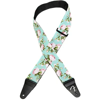 Step up your style on-stage with the Floral Strap! eaturing vintage rose-patterned designs, the Floral Strap is crafted from smooth polyester twill fabric. Twill weave fabric with a classic textured design. Which is backed by smooth tubular nylon for increased comfort. 2" width with a length adjustable from 34"-59" Featuring the iconic Fender "F" cone-shaped leather ends