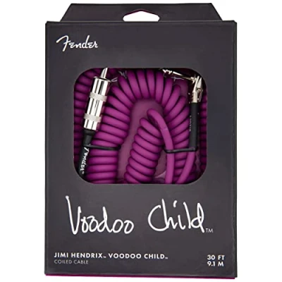 Fender Hendrix Voodoo Child Coil Instrument Cable, 95% Copper Coverage Shield for Less Noise Interference, Straight,Angle, 30', Purple