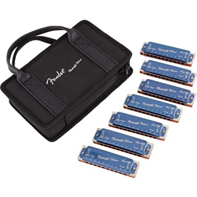 Fender® MIDNIGHT BLUES HARMONICA Set of 7 Diatonic 10 Hole Tuning: C/G/A/D/F/E/Bb Major Includes Case Colour: Blue (Limited Edition)