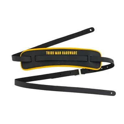 Jack White’s raw, gritty aesthetic and boundary-pushing creativity have made him one of the most influential guitarists of our time. Now, Fender celebrates his legacy with a bold collection of co-branded Third Man Hardware accessories—designed to embody the striking aesthetic and unmistakable style that define his artistry. Add retro-inspired style to your guitar with the Fender x Third Man Hardware Leather Strap. Made from premium full-grain leather, this 2.5" wide strap features ample padding for maximum playing comfort. Drawing inspiration from Third Man's iconic aesthetic, the strap’s bold yellow trim and Third Man Hardware logo deliver a vintage flair and timeless appeal. Whether you're on stage or in the studio, this strap brings a touch of Jack White’s legendary look to your performance. Made in the USA. Adjustable from 42-55” for comfort