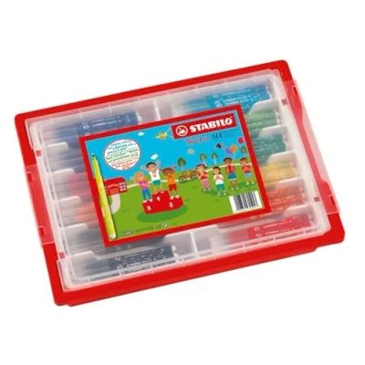 Comes in a Gratnell's tray of 144 pens with 12 assorted colours, perfect for large classrooms. Ergonomically designed grip zones to encourage the recommended tripod grip. It's super washable ink is easy to remove from both hands and clothes. The pens are perfect for drawing and writing. Its robust tip has a line width of 0.7mm.