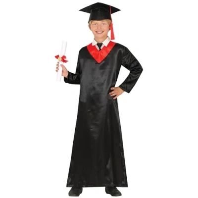 CELEBRATE GRADUATION IN STYLE! - Includes cap and gown in black and red. Does not include diploma or shirt. Perfect for little ones to feel like real graduates! DIMENSIONS - Size 5-6 years, ideal for little ones. Perfect for showcasing a fun and colourful style. CHILDREN'S FANCY DRESS IN RED AND BLACK - Made from fire-retardant polyester. Perfect for themed parties and celebrations. Let your little one shine at any event! TURN YOUR LITTLE ONE INTO A STYLISH GRADUATE! - Children's fancy dress in red and black with cap and gown, perfect for graduation parties and celebrations. Guaranteed fun at every party! FANCY DRESS AND ACCESSORIES FOR ALL OCCASIONS - At Fiestas Guirca, we offer fancy dress, accessories, and decorations for Halloween, Carnival, Hen and Stag Parties, and more. Visit our Amazon store to see more., Manufacturer: FIESTAS GUIRCA