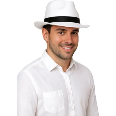 FIESTAS GUIRCA GUI13507 White Gangster Hat with Black Bow
