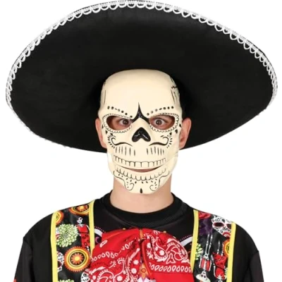 CELEBRATE IN STYLE! - Includes the Mexican skeleton mask. Hat and other accessories not included. Perfect for Halloween and Día de Muertos! DIMENSIONS - One size fits all. Suitable size for all users. MATERIALS - Made from PVC, perfect for adding a spooky touch to your parties. Product colour: white. SCARE AT EVERY PARTY! - Mexican skeleton mask made of PVC, perfect for Halloween and Day of the Dead. Having fun has never been so terrifying! COSTUMES AND ACCESSORIES FOR ALL OCCASIONS - At Fiestas Guirca, we have costumes, accessories, and decorations for Halloween, Carnival, Hen/Stag Parties, and more. Visit our Amazon store to see more., Manufacturer: FIESTAS GUIRCA S.L.