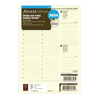 Filofax A5 week on two pages column format 5 language 2024 diary cotton cream