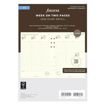 Filofax A5 week on two pages column format 5 language 2025 diary cotton cream