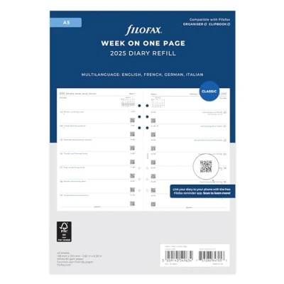Filofax A5 week per page 4 language 2025 diary