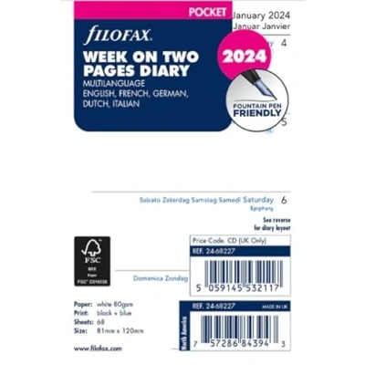 FILOFAX Calendar insert pocket 1 week on 2 pages (multilanguage)2024