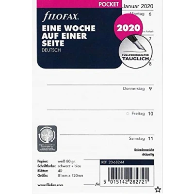 Filofax Calendar Pocket 1 Week on One Page (German) 2026