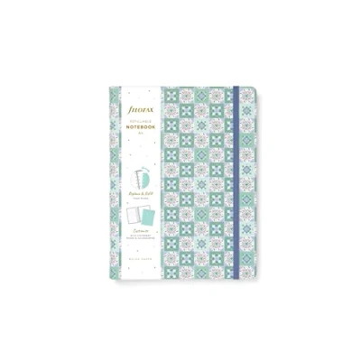 Part of the Filofax Mediterranean range Refillable A5 notebook Lies completely flat and folds back-to-back Pages can be added, removed or repositioned 56 fountain pen friendly ruled pages