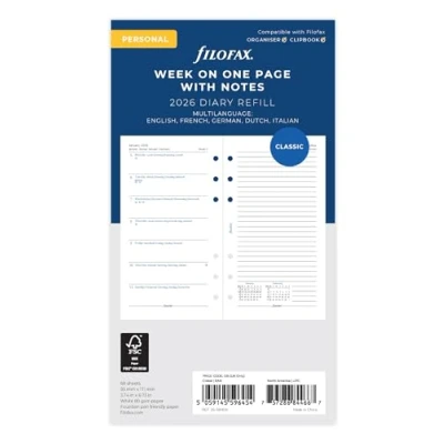 Filofax Personal week per page with notes 5 language 2026 diary 26 68409