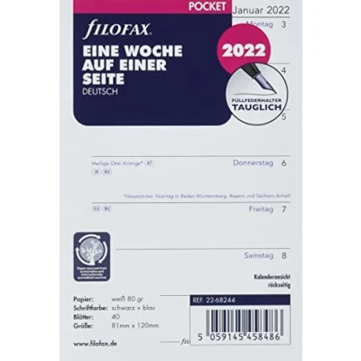Filofax Pocket 1 Week on 1 Page (German) 2022